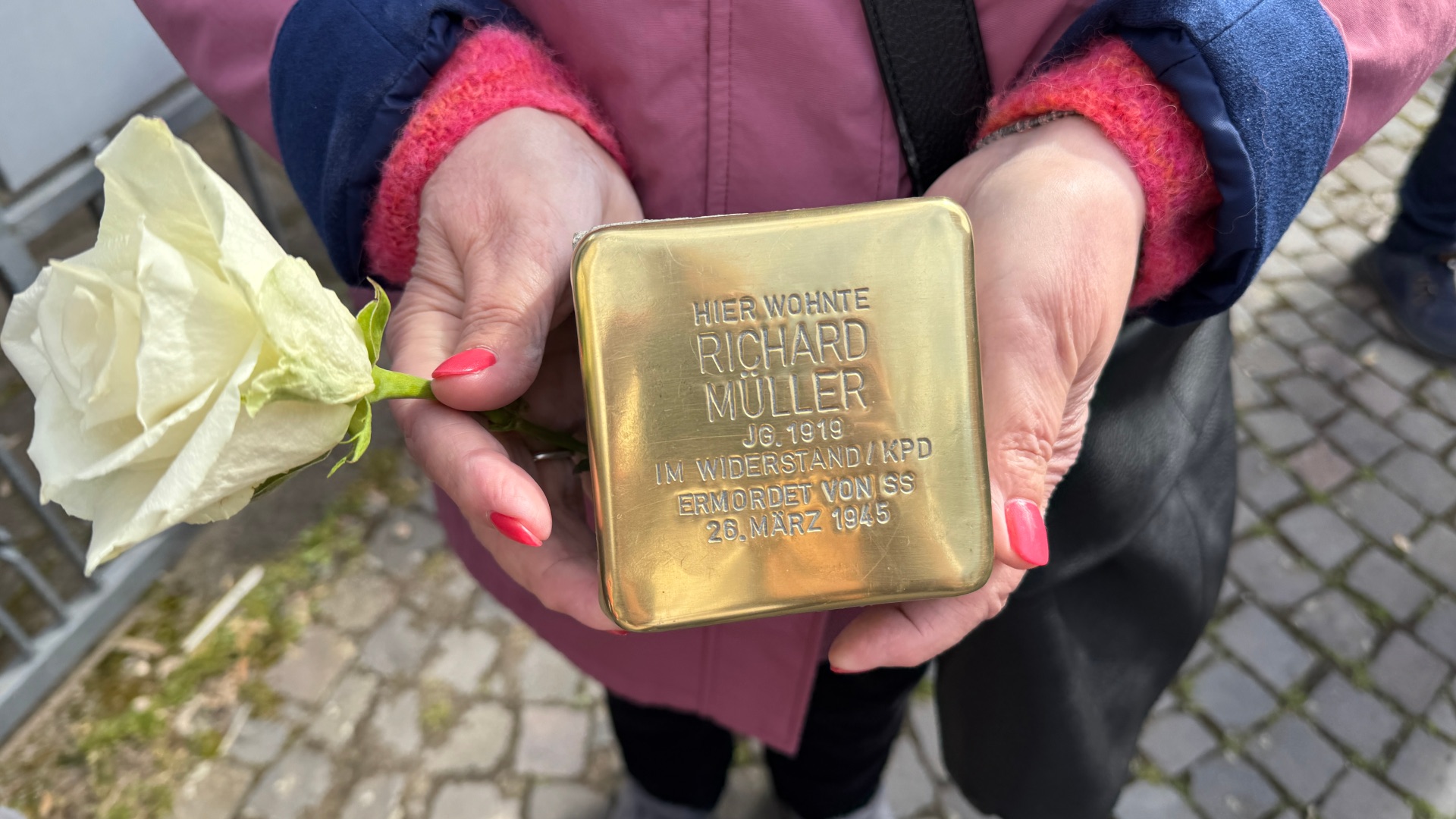 „Nicht alle haben weggesehen, einige haben Widerstand geleistet“, so eröffnet Otto Wagner, Bündnissprecher von „Bunt statt braun“ seine Ansprache bei der Stolpersteinverlegung von Richard Müller am 26. März 2026.