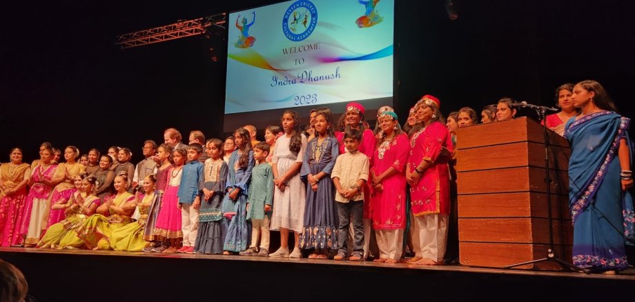 Für das Indra Dhanush Festival kommen Schaustellerinnen und Schausteller aus ganz Deutschland zusammen. Auf der Bühne werden den Abend lang regionale Tänze aus über 15 Regionen Indiens gezeigt. Mehr als 200 Künstlerinnen und Künstler in traditioneller Kleidung beteiligen sich daran.