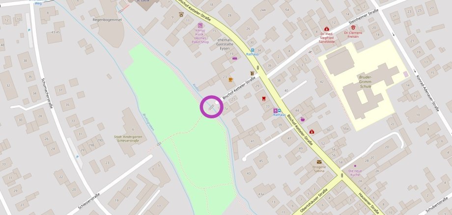 Die direkte Querverbindung Schlesierstraße – Bischoff-Ketteler-Straße ist somit nicht möglich, so dass entweder eine Umgehung über die St. Lucia Kirche nach Norden oder in Richtung Feuerwehr Lämmerspiel nach Süden gewählt werden muss.