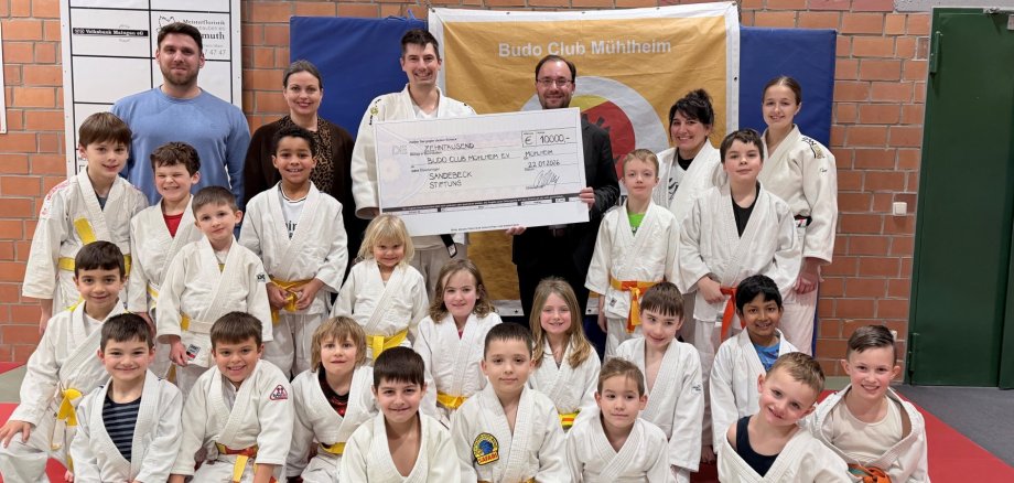 Vonseiten des Budo Clubs nahm der Vorstandsvorsitzende Dominik Leist nahm mit seiner Vereinskollegin Maren Stahlberg (Abteilungsleitung Judo der Behinderten) und einer weiteren Übungsleiterin einen Spendenscheck in Höhe von 10.000 Euro entgegen. Die bei der Übergabe anwesenden Judo-Kids dürfen sich mit den anderen Mitgliedern des Vereins über Sportgeräte für den Kraftraum freuen, der in der Sporthalle Mühlheim angesiedelt ist.