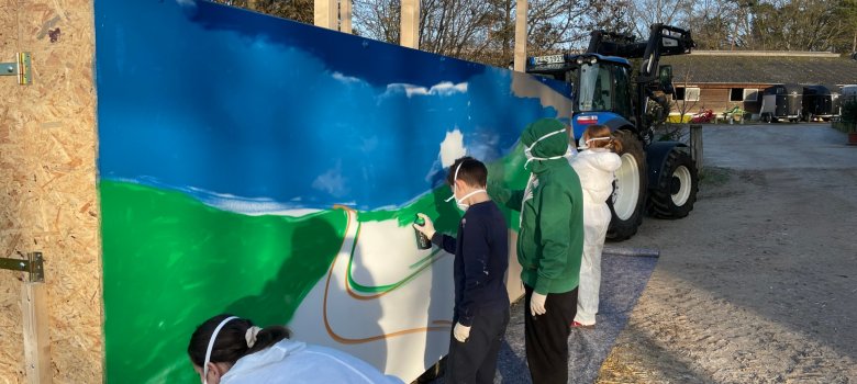 Ein zweites Projekt kam in Zusammenarbeit mit dem Reiterhof „Dietesheimer Hof“ zustande. Ein bunter Faschingswagen, der bei den Fastnachtsumzügen mitfahren wird, wurde von insgesamt 13 Jugendlichen innerhalb von 13 Stunden in mehreren Tagen liebevoll mit Reiterhof, Pferden, Wald, Wiese und einem Stall besprüht. Der Wagen wird beiden Umzügen von Joris Christiansen, einem pädagogischen Mitarbeiter der Jugendförderung, der das Graffitiprojekt begleitet hat sowie von mehreren Jugendlichen begleitet werden. Inmitten der bunten Parade zeigt sich der Umzugswagen dann mit vollen 32 Quadratmetern Fläche als sommerliches Kunstwerk.