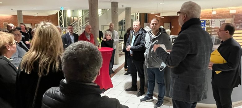 Bürgermeister Dr. Krey lobte bei der Ausstellungseröffnung am 23. Januar die geleistete Arbeit. Vielfach seien Verwaltung und Ehrenamtliche damals herausgefordert gewesen, die spürbar steigenden Flüchtlingszahlen zu bewältigen, was den Aufbau spezialisierter Abteilungen zur Wohnraumsicherung, Unterbringung und Koordination von ehrenamtlichem Engagement erforderlich machte. Die Verwaltungsstrukturen waren darauf nicht vorbereitet und mussten in kurzer Zeit angepasst werden. Dr. Krey betonte, dass das Engagement von freiwilligen Akteurinnen und Akteuren entscheidend dazu beigetragen habe, Aufnahme sowie auch in der Begleitung die ersten Integrationsschritte zu bewältigen.
