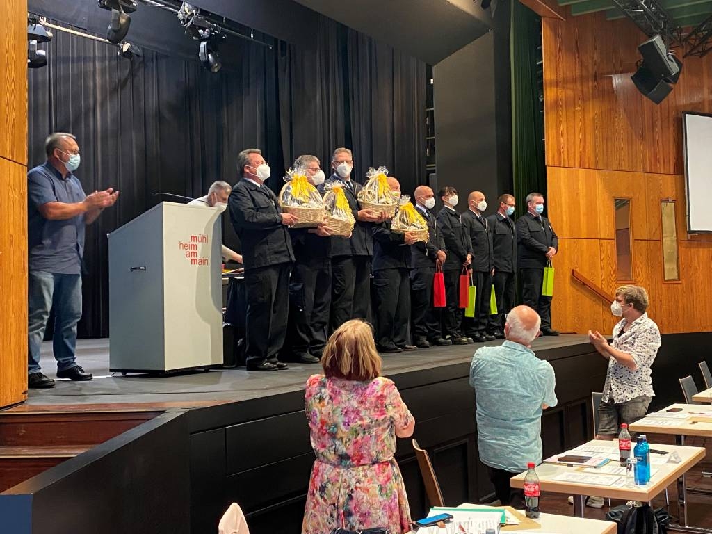 Im Rahmen der Jahreshauptversammlung der Freiwilligen Feuerwehr Mühlheim am gestrigen Montag, die im Feuerwehrhaus an der Anton-Dey-Straße stattfand, verlieh Bürgermeister Daniel Tybussek den Ehrenbrief der Stadt Mühlheim an die langjährigen Feuerwehrmänner Michael Kawecki und Jürgen Tietz.