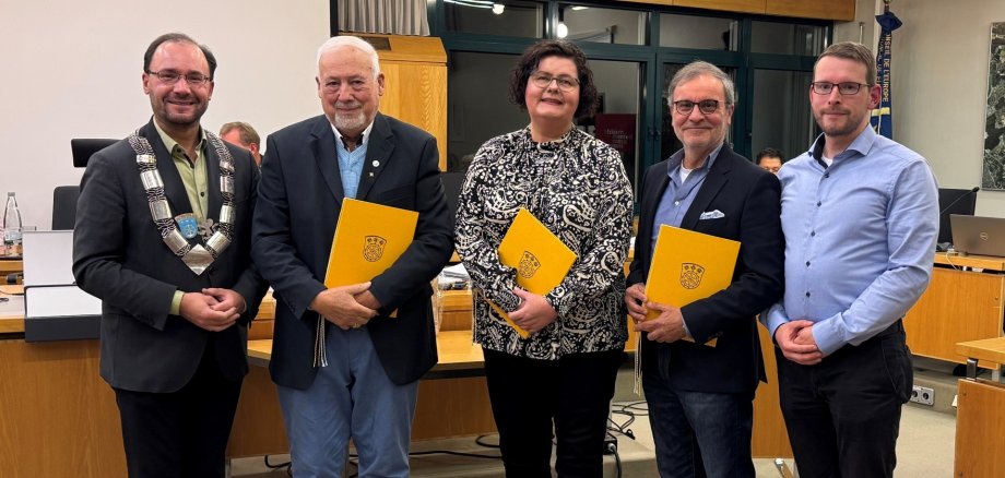 „Ich freue mich, dass die Stadtverordnetenversammlung einstimmig beschlossen hat, Frau Stein, Herrn Stier und Herrn Müller diese wohlverdienten Ehrungen zuteilwerden zu lassen. Es war mir eine Ehre, ihnen die Urkunden zu überreichen. Hoffentlich erwarten uns noch viele weitere gemeinsame Jahre in der Mühlheimer Kommunalpolitik“, sagt Bürgermeister Dr. Krey.